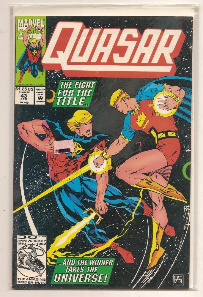 QUASAR #43 - Feb 1993 Marvel Comics in VF-NM Condition as pictured. all comics are shipped bagged and boarded all shipments have tracking within the united states and shipping is a flat $5 for all Comics ordered (1 or 1000 shipping is only $5)