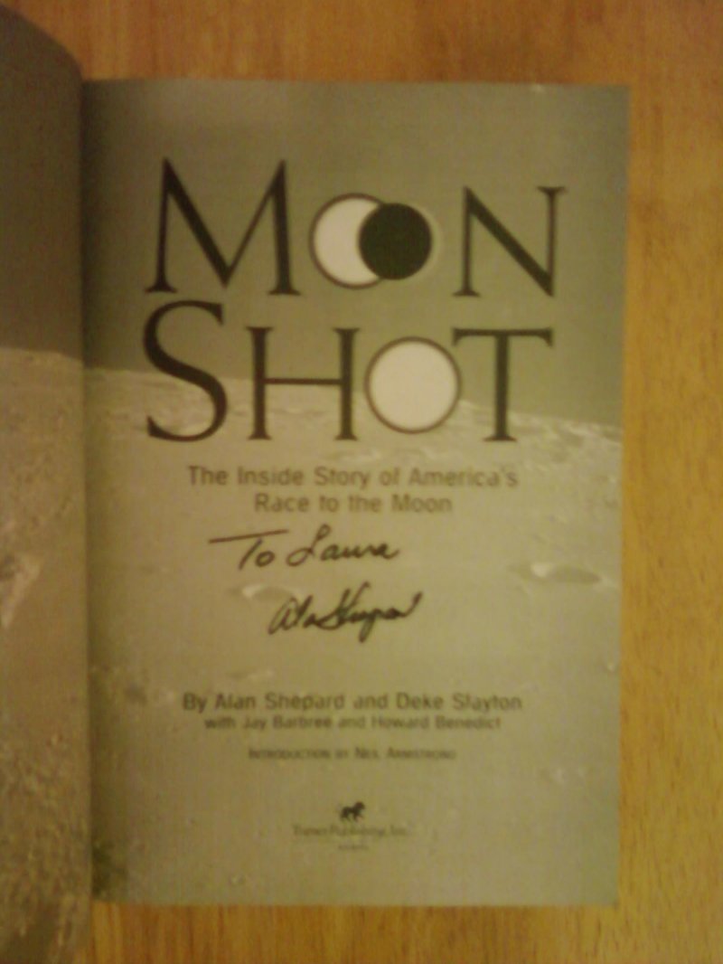 For Sale Moon Shot the Inside story of America's race To The Moon Trade Size Paper back (large paperback) Signed by Allen Shepard The First Man In Space and one of the Original 7 NASA Astraunats. Very Rare Signature. Mr. Shepard Passed away in 1998. 100% Authentic. Book will be accompanied by our COA.