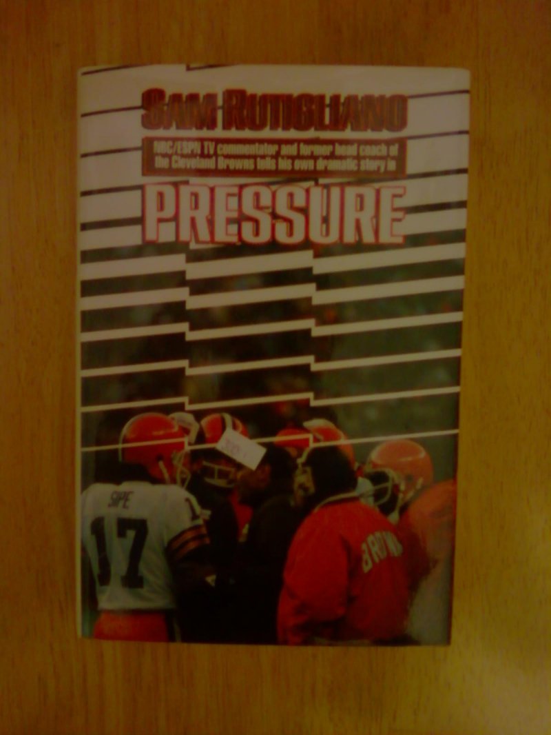 For Sale Pressure By Sam Rutigliano hardback book Signed. Former Cleveland Browns coach. 100% Authentic. Book will be accompanied by our COA.