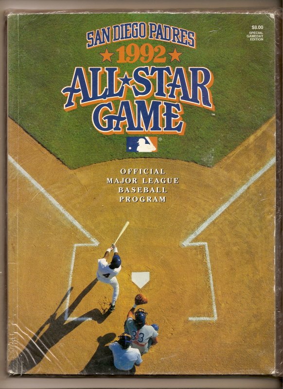 1992 Baseball MLB All Star Game Program San Diego. This Program is in very good condition no ripped torn or missing pages, but it does have some cover wear as seen in the photo still would look great framed with a Ticket or picture a RARE piece of all sta