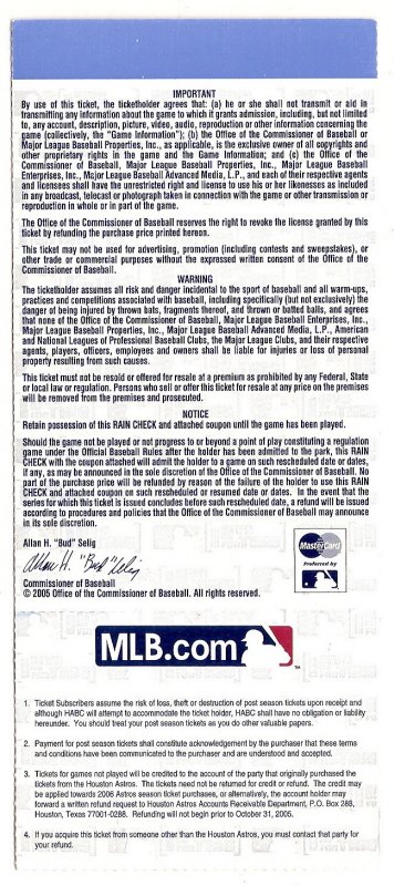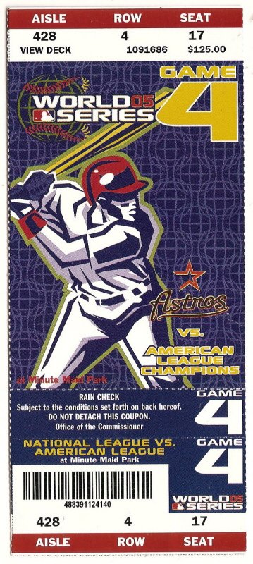 2005 World Series Game 4 Full Ticket White Sox Astros