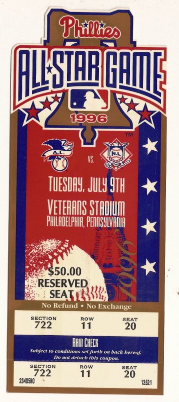 1996 Baseball All Star Game Full Ticket Philadelphia MLB baseball