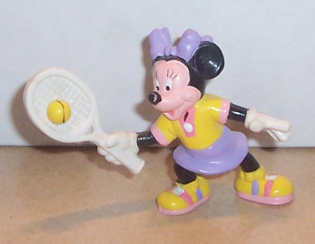Disney MINNIE MOUSE pvc figure #7 Play tennis by applause. figure is in good USED condition and measures about 2-2.5 inches tall. what you see is what you get.