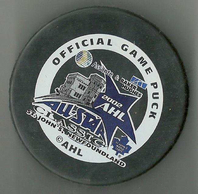 more great collectibles @ www.everythingcollectibles.biz 2002 AHL official Game Puck St Johns Maple Leafs! this is not a souvenir puck but an actual official game puck! Its in very good Condition as you can see from the picture. what you see is what you get.