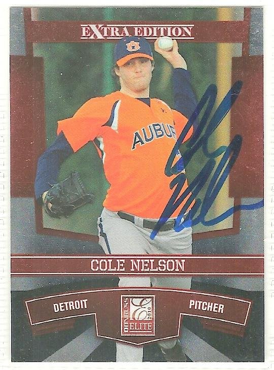 cole nelson signed autographed baseball card 2010 donruss elite extra edition