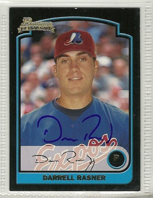 more autographs at www.everythingcollectibles.biz. For sale an Authentic darrell rasner signed autographed baseball card 2003 bowman. what you see is what you will recieve. please look at the photos provided for more details. if you have any questions please dont hesitate to ask. Comes with a COA from Everything Collectibles
