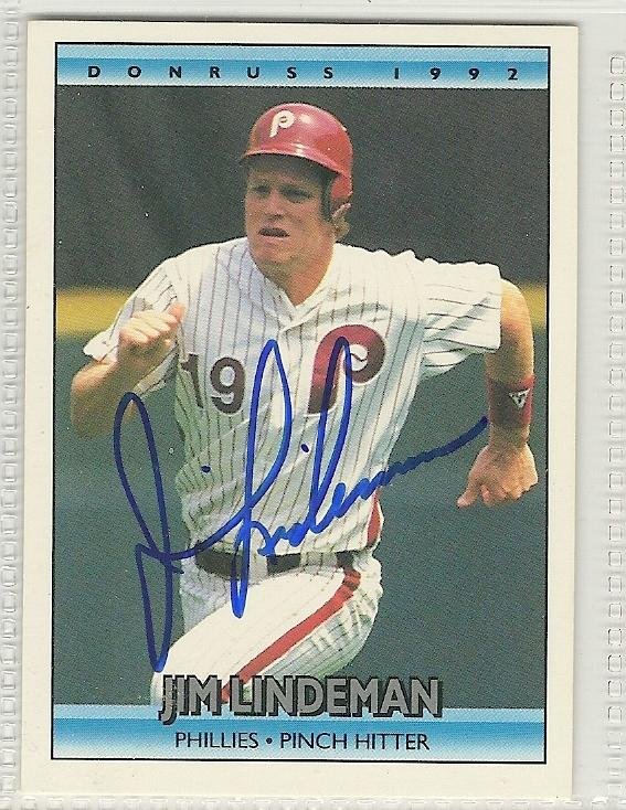 jim lindeman signed autographed baseball card 1992 donruss