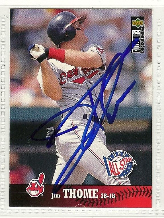 more autographs at www.everythingcollectibles.biz. For sale an Authentic Jim Thome signed autographed baseball card 1997 Upper Deck Collectors choice. what you see is what you will recieve. please look at the photos provided for more details. if you have any questions please dont hesitate to ask. Comes with a COA from Everything Collectibles