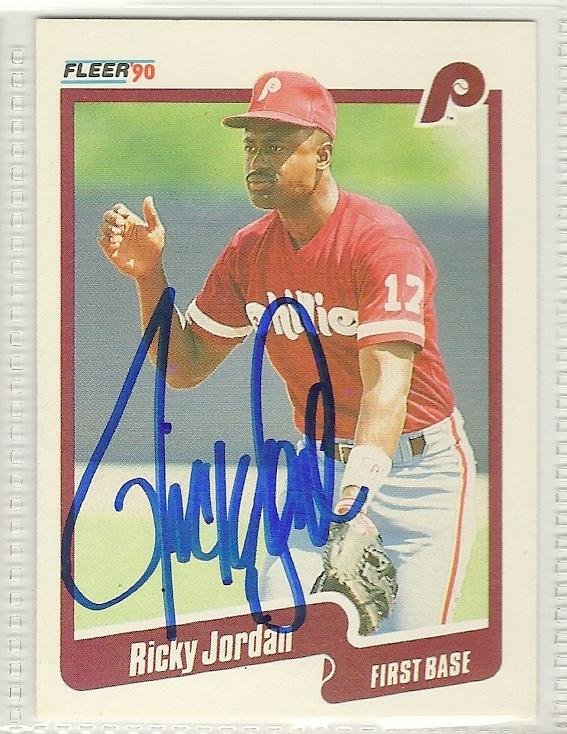 ricky jordan signed autographed baseball card 1990 fleer