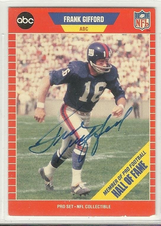 more autographs at www.everythingcollectibles.biz. For sale an Authentic frank gifford signed autographed football card 1989 pro set HOF in person. what you see is what you will recieve. please look at the photos provided for more details. if you have any questiiiiions please dont hesitate to ask. Comes with a COA from Everything Collectibles