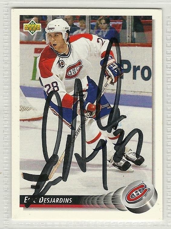more autographs at www.everythingcollectibles.biz. For sale an Authentic eric desjardins signed autographed hockey card 1992 upper deck in person. what you see is what you will recieve. please look at the photos provided for more details. if you have any questions please dont hesitate to ask. Comes with a COA from Everything Collectibles