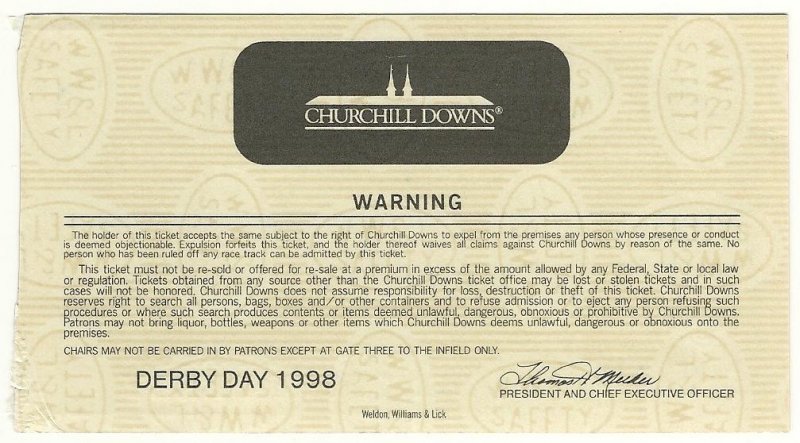 1998 Kentucky Derby Ticket Stub Real Quiet