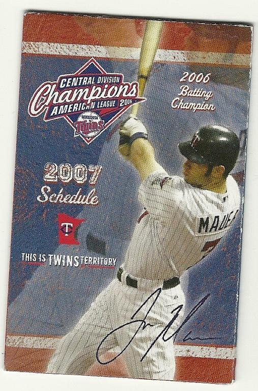 more great sports memorabilia @ www.everythingcollectibles.biz 2007 Minnesota Twins Pocket Schedule Sked. what you see is what you will recieve. Fast same or next day shipping with delivery confirmation.