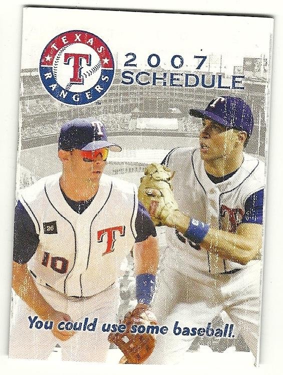 more great sports memorabilia @ www.everythingcollectibles.biz 2007 Texas Rangers Pocket Schedule Sked. what you see is what you will recieve. Fast same or next day shipping with delivery confirmation.