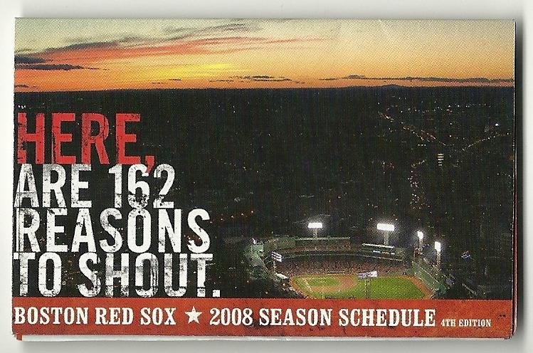 more great sports memorabilia @ www.everythingcollectibles.biz 2008 Boston Red Sox Pocket Schedule Sked. what you see is what you will recieve. Fast same or next day shipping with delivery confirmation.