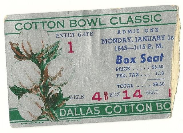 1945 cotton bowl ticket stub OKLAHOMA A&M TCU