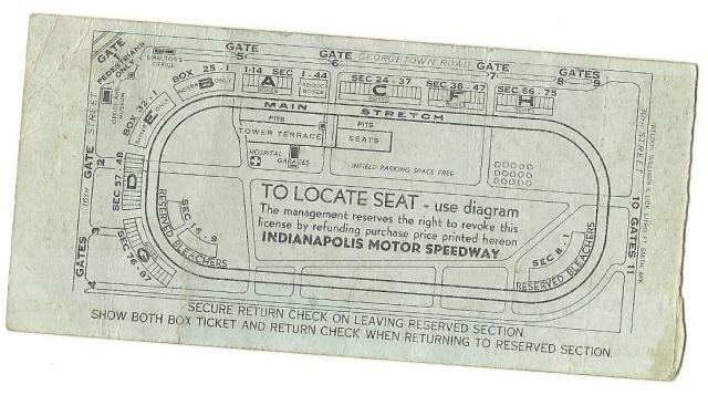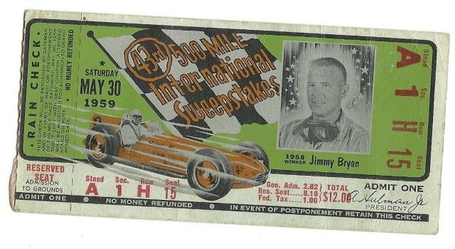 1959 Indianapolis 500 Mile Race Ticket Stub Rodger Ward winner