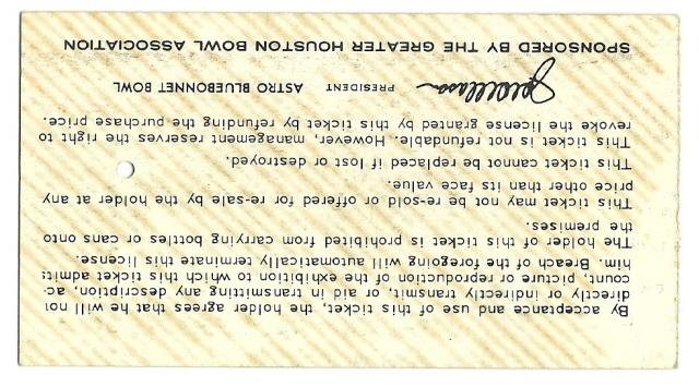 1974 Bluebonnet Bowl Ticket stub Houston N.C state
