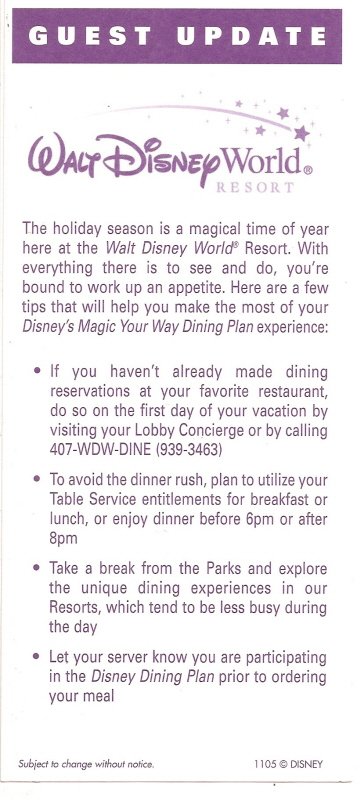 2005 walt disney world Guest Update Flyer