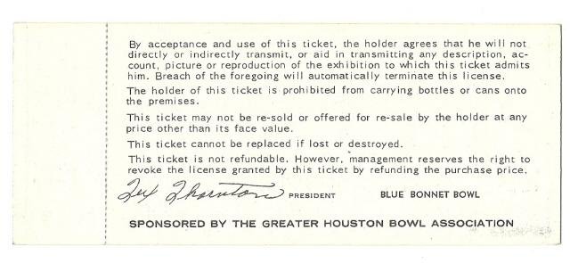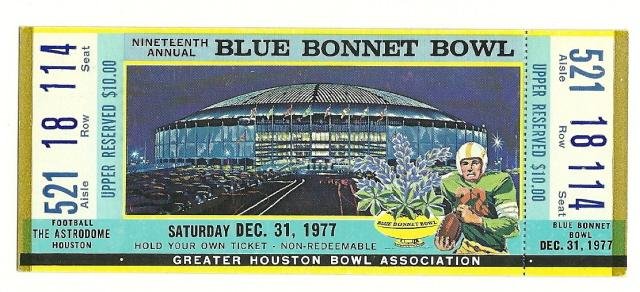 1977 Bluebonnet Bowl Full Ticket USC Texas A & M