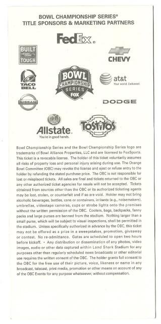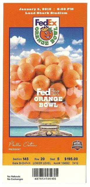 2010 Orange Bowl Game Full Ticket Iowa Georgia Tech