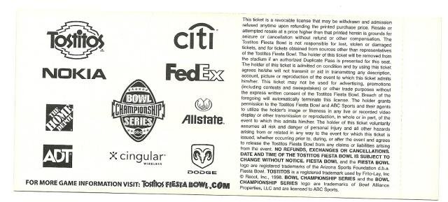 2004 Fiesta Bowl Game Full Unused ticket Ohio State Kansas State. This Ticket is in very good condition would look great framed with a program or picture a RARE piece of College Bowl History if you have any further questions please dont hesitate to ask!