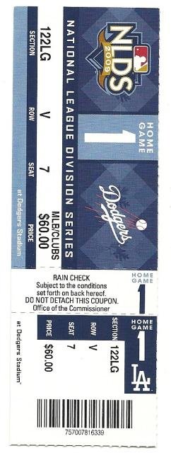 2009 NLDS Full Season Ticket Dodgers Cardinals Game 1