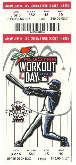 2003 All Star Game Home Run Derby Workout day Full Ticket White Sox