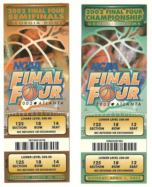 2002 NCAA final Four Full Unused Finals & Semi finals Ticket Set