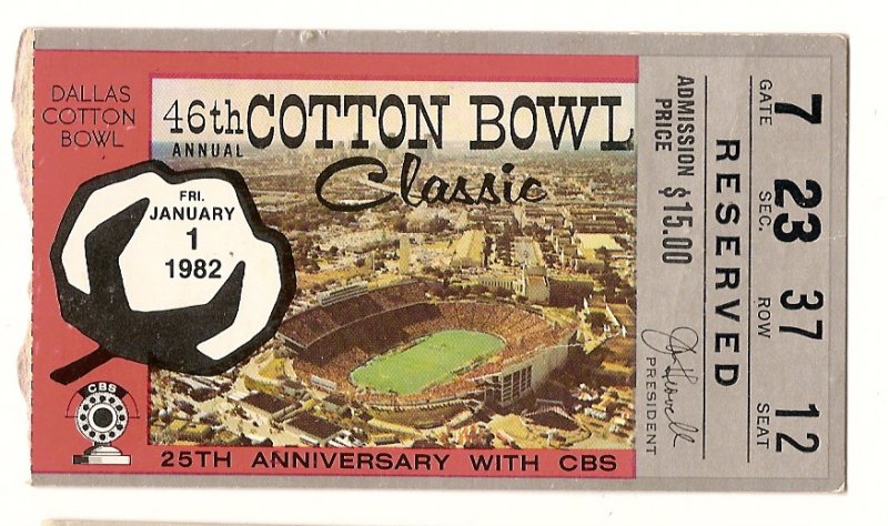 1982 Cotton Bowl Game Ticket Stub Alabama Texas