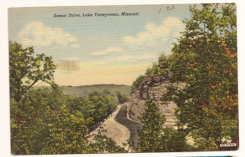 Senic Drive Lake Taneycomo Missouri Linen Postcard