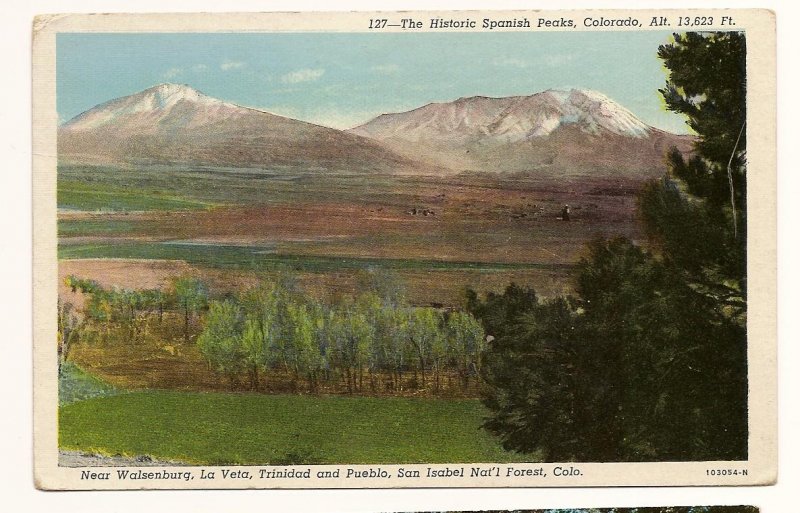 The historic spanish Peaks Colorado Postcard Unused And In VG condition as you can see from the picture (only with in the United states,International Buyers Please contact me for shipping rates)