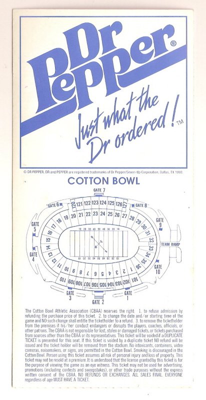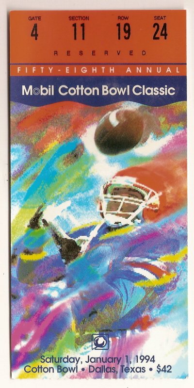 1994 Cotton Bowl Game ticket stub Notre Dame Texas A&M. This Its in very good Condition no rips tears writing or creasing theres not to many of these floating around. what you see is what you get.a great piece of College football History if you have anyy