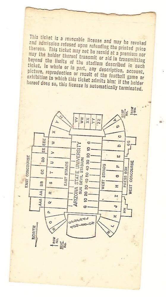 1972 FIESTA BOWL Ticket Stub Arizona State Vs Missouri