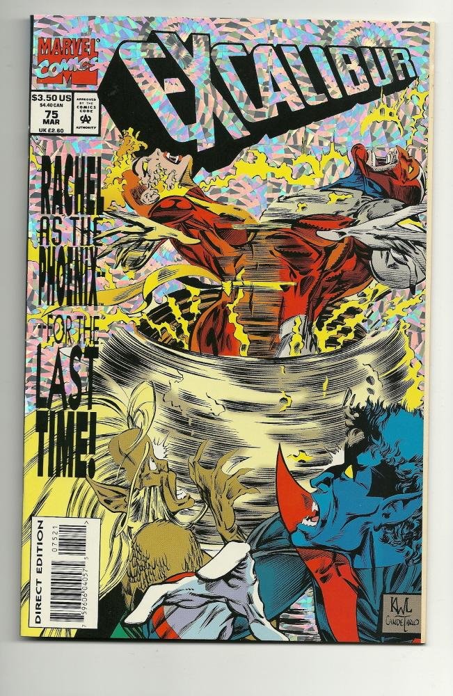 Marvel Comics Excalibur #75 March 1994 Foil in VF-NM Condition as pictured. all comics are shipped bagged and boarded all shipments have tracking within the united states and shipping is a flat $5 for all Comics ordered (1 or 1000 shipping is only $5)