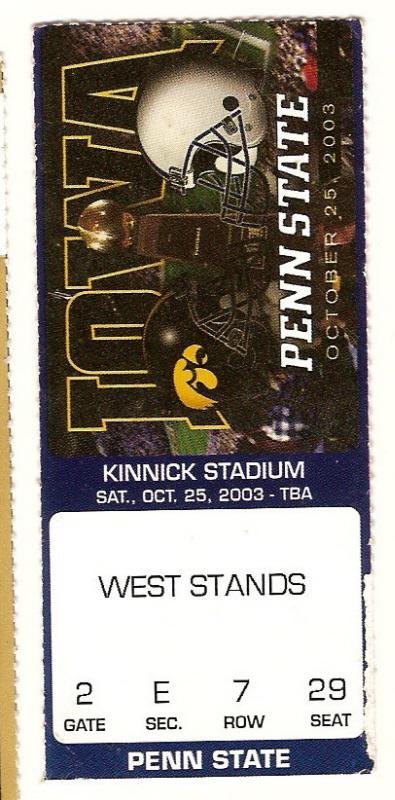 2003 Oct 25th Ticket Stub iowa vs Penn State