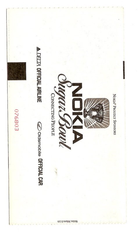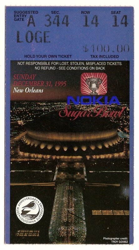 1995 Sugar Bowl Ticket Stub Texas Virginia Tech
