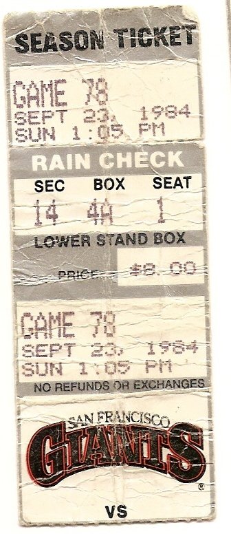 1984 Los Angeles Dodgers @ San Francisco Giants ticket stub Sept 23rd
