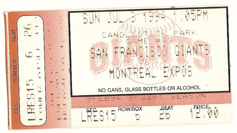 1994 Montreal Expos @ San Francisco Giants ticket stub July 3rd