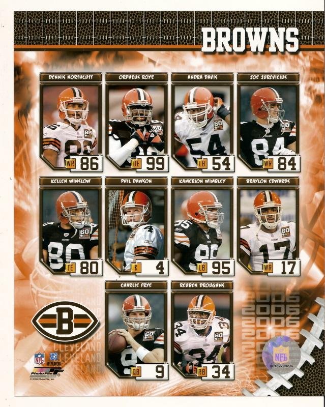 more great Photos @ www.everythingcollectibles.biz For Sale is a 2006 Cleveland Browns 8x10 Photo Composite Dawson, Winslow, Edwards and more. Would Make a Great Gift. please feel free to contact us with any questions.