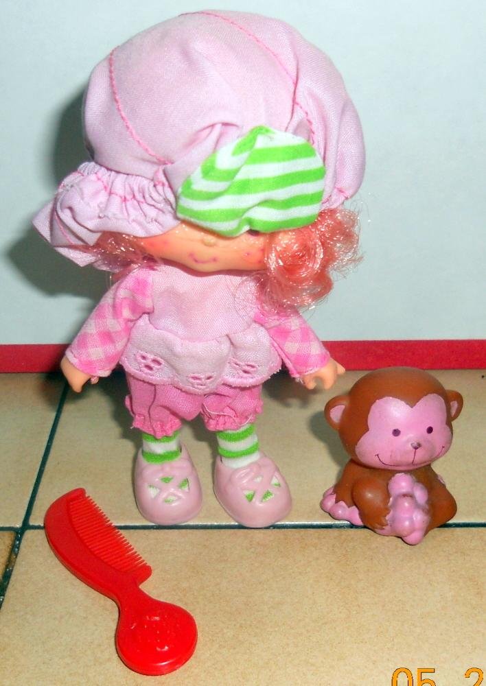 more strawberry shortcake itemss @ www.everythingcollectibles.biz for sale is a vintage Strawberry Shortcake Raspberry Tart with Pet Rhubarb monkey & Comb 100% Complete! Its in Very good Used Condition as you can see from the picture. what you see is what you get.