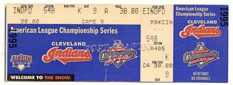 1995 ALCS Ticket Stub Mariners @ Indians Game 4. This is a Ticket Stub it is in Good used Condition no rips writing or tears just some minor handling wear. Highlights of this game were Home Runs from Hall of Famers Eddie Murray and Jim Thome nice RARE piece of Baseball History if you have any further questions please don't hesitate to ask!
