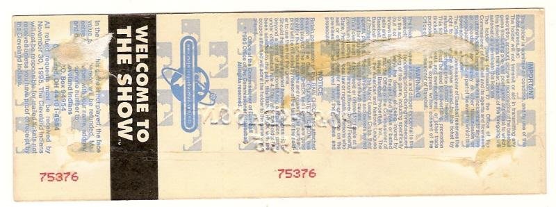 1995 ALCS Ticket Stub Mariners @ Indians Game 4 Jim Thome Eddie Murrary Home Run
