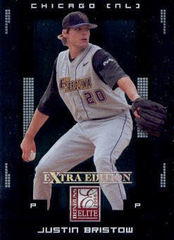 more Great cards @ www.everythingcollectibles.biz For Sale is a 2008 Donruss Elite Extra Edition #61 Justin Bristow in NrMt Condition. all single cards are shipped in Penny Sleeves and top loaders. all orders ship with delivery confirmation as well. we usually ship within 2 days of receiving an order. Shipping is a Flat $2 no matter how many cards you buy 1 or 1000 its still $2.