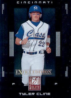 more Great cards @ www.everythingcollectibles.biz For Sale is a 2008 Donruss Elite Extra Edition #93 Tyler Cline in NrMt Condition. all single cards are shipped in Penny Sleeves and top loaders. all orders ship with delivery confirmation as well. we usually ship within 2 days of receiving an order. Shipping is a Flat $2 no matter how many cards you buy 1 or 1000 its still $2.