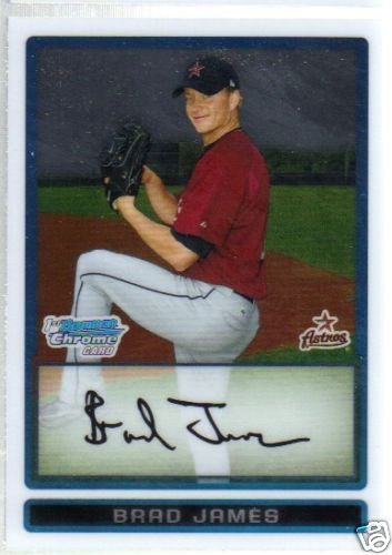 more Great cards @ www.everythingcollectibles.biz For Sale is a 2009 Bowman Chrome Prospect #195 Brad James BCP in NrMt Condition. all single cards are shipped in Penny Sleeves and top loaders. all orders ship with delivery confirmation as well. we usually ship within 2 days of receiving an order. Shipping is a Flat $2 no matter how many cards you buy 1 or 1000 its still $2.