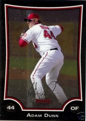 more Great cards @ www.everythingcollectibles.biz For Sale is a 2009 Bowman Chrome #24 Adam Dunn Nationals in NrMt Condition. all single cards are shipped in Penny Sleeves and top loaders. all orders ship with delivery confirmation as well. we usually ship within 2 days of receiving an order. Shipping is a Flat $2 no matter how many cards you buy 1 or 1000 its still $2.