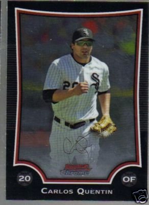 more Great cards @ www.everythingcollectibles.biz For Sale is a 2009 Bowman Chrome #169 Carlos Quentin white sox in NrMt Condition. all single cards are shipped in Penny Sleeves and top loaders. all orders ship with delivery confirmation as well. we usually ship within 2 days of receiving an order. Shipping is a Flat $2 no matter how many cards you buy 1 or 1000 its still $2.