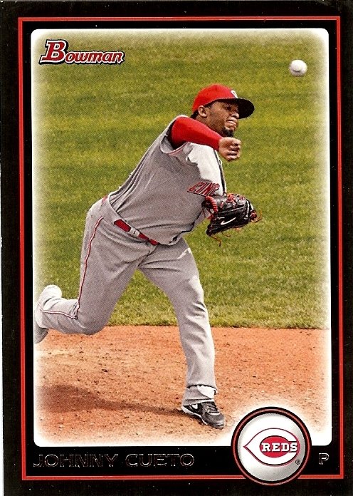 more Great cards @ www.everythingcollectibles.biz For Sale is a 2010 Bowman #58 Johnny Cueto Reds in NrMt Condition. all single cards are shipped in Penny Sleeves and top loaders. all orders ship with delivery confirmation as well. we usually ship within 2 days of receiving an order. Shipping is a Flat $2 no matter how many cards you buy 1 or 1000 its still $2.