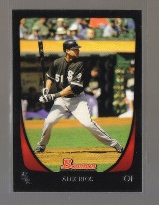more Great cards @ www.everythingcollectibles.biz For Sale is a 2011 Bowman #81 ALEX RIOS White Sox in NrMt Condition. all single cards are shipped in Penny Sleeves and top loaders. all orders ship with delivery confirmation as well. we usually ship within 2 days of receiving an order. Shipping is a Flat $2 no matter how many cards you buy 1 or 1000 its still $2.